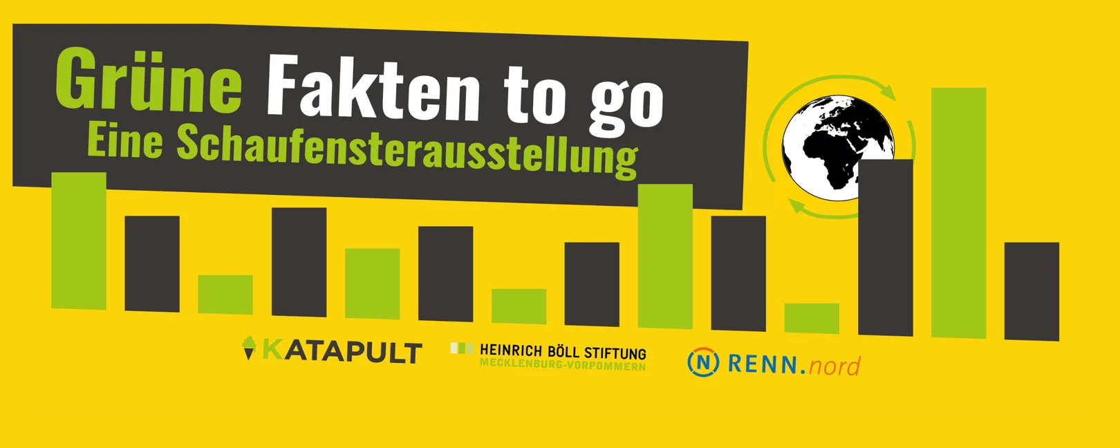 Face the facts – die Klimakrise ist da und wir müssen JETZT mit aller Kraft politisch aber auch persönlich aktiv werden, um die Erderhitzung zu begrenzen. In unserer Schaufenster-Ausstellung „Grüne Fakten to Go“ präsentieren wir daher gemeinsam mit dem Katapult-Verlag Fakten, Fakten, Fakten und dies in besonders ansehnlicher und übersichtlicher Form. Informiert Euch über die Standorte aller Atomkraftwerke in der Welt – und was in Lubmin passiert. Erfahrt, wie viele funktionierende Althandys ungenutzt in deutschen Haushalten liegen – und wie ihr sie einer guten Nutzung zuführen könnt. Lest, welche bedeutende Rolle Moore in MV eigentlich für den Klimaschutz und die Biodiversität spielen.